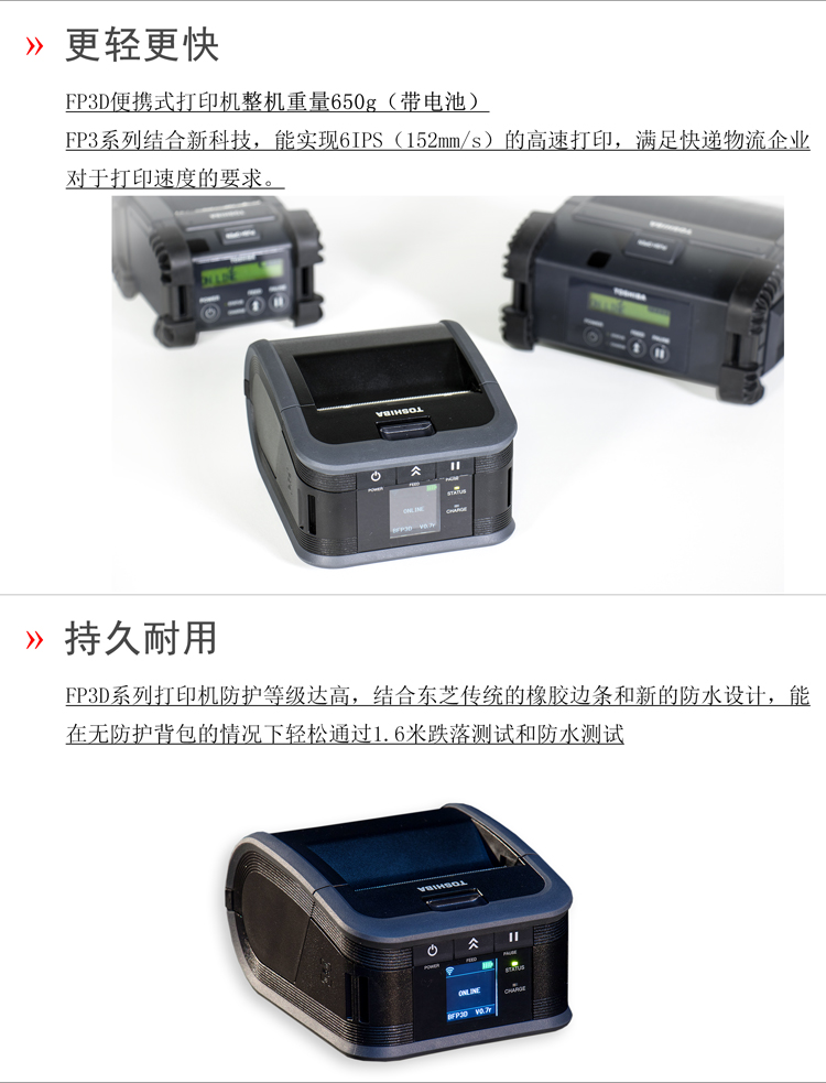 東芝將高性能移動打印技術帶到你的手中,FP3D標準版3寸便攜式熱敏打印機,擁有6IPS(152mm/s)高速打印、彩色中文液晶屏等技術,蘊含著東芝對于便攜性、可靠性和高性能的承諾,滿足各類便攜打印的應用需求。廣泛的應用領域:電子商務/物流/快遞行業/零售業/政府/公共事業/醫療深圳市豐澤信信息技術有限公司 聯系人:李先生 手機:18929304946 孫小姐 13424221360