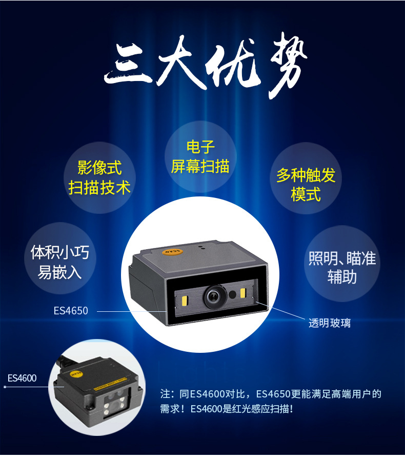MINDEO民德ES4650嵌入式影像掃描器、二維碼固定式掃描器